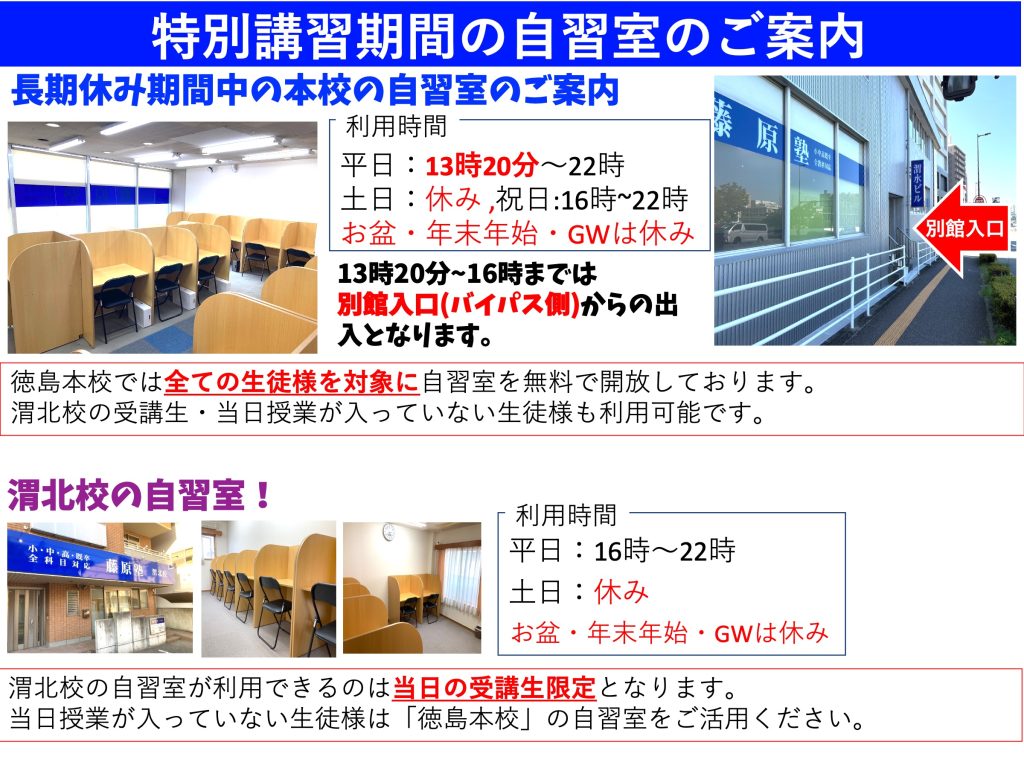 徳島本校と渭北校で講習の内容が異なりますので、ご注意ください!