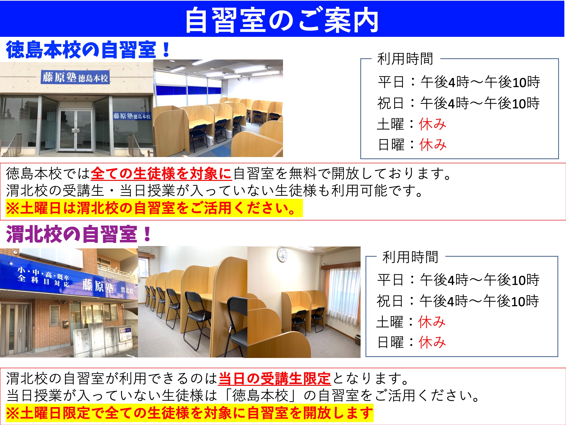 自習室・飲食スペースも完備 更新日:2026年2月11日 公開日:2020年1月18日 自習室も無料でご利用できます。 成績の向上には日々の継続的な学習が欠かせません。 塾での授業だけでなく、家庭学習も合わせて行うことが重要です。 ただ、ご家庭に集中して勉強できる部屋がない, お子様が携帯電話やゲーム機など […] 続きを読む